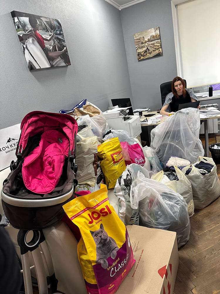 Разом із командою, пацієнтами, колегами з інших клінік сформували допомогу на Херсон у вигляді одягу, готових продуктових наборів, сухого корму для тварин, засобів гігієни (зубні щітки, памперси, пелюшки).